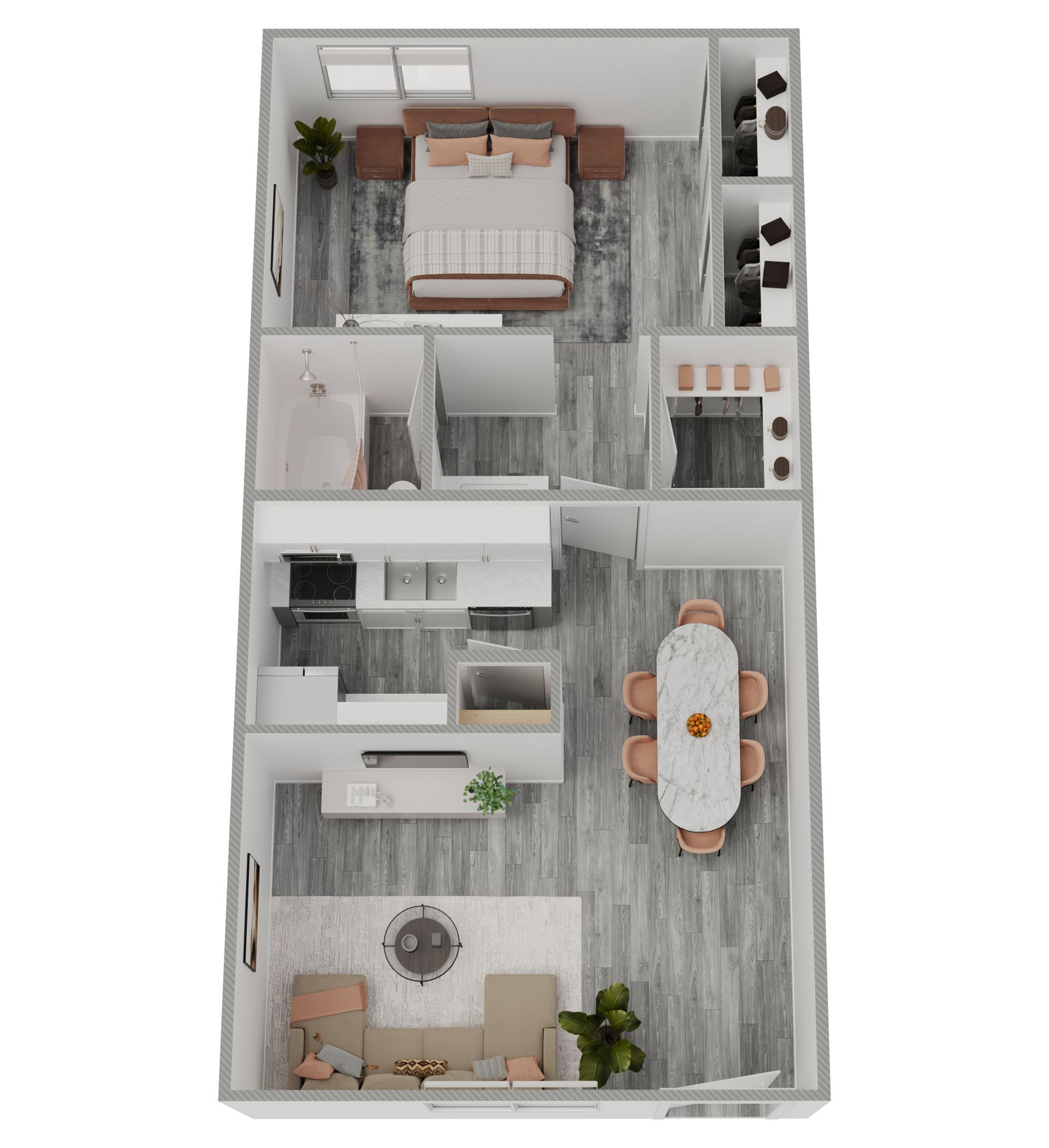 At The Halston apartments in Tempe, Arizona, we prioritize your comfort with our thoughtfully designed apartments for rent. Carefully curating these living spaces ensures a perfect blend of style and functionality. Embrace a convenient and enjoyable lifestyle within our one and two-bedroom apartments, complemented by modern amenities such as ceiling fans, an in-home washer and dryer, and a fully-equipped kitchen. Allow our apartments to be a comfortable and stylish haven for your everyday living needs.